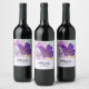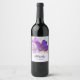 Étiquettes de vin avec une belle photo d'un crocus violet foncé serti dans un bocal en verre. Une légère fleur violette est présente dans l'arrière - plan.