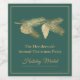 Festive vert émeraude et or ton étiquette vin de vacances avec une branche de pin doré avec un cône de pin. Personnalisez les champs de texte pour votre fête de vacances. Des produits correspondants sont disponibles.