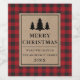 Rustic Kraft Red Buffalo Plaid Joyeux Étiquette de vin de Noël comprend des silhouettes de pin.
