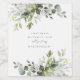 Ce design présente des fleurs bleues poussiéreuses et des feuilles d'eucalyptus dans des nuances de vert.