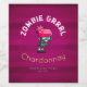 Étiquettes de vin qui sont personnalisables. Texte : Zombie Grrrl Chardonnay, avec vos coordonnées personnelles ci-dessous. Conçu avec une jolie illustration de fille zombie avec cheveux roses chauds et peau verte mort. Portant une tenue à thème punk rock. Ses bras s'étendirent à la recherche de cerveaux. Placé sur un arrière - plan de style grunge magenta foncé avec des rayures défraîchies.