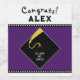 Étiquettes de cadeaux de remise de diplômes créatifs et décoration de fête avec casquette noire classique et modèle de gode or sur arrière - plan violet. Pour personnaliser le texte de modification pour ajouter le nom et l'année de classe supérieure.