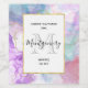 Étiquettes de bouteilles de vin avec une belle peinture artistique. Créé avec des encres d'alcool à couler. Couleurs violettes, vertes et bleues qui se mélangent. Des rubans d'or ondulés minces se mêlent à ces couleurs douces et douces. Un cadre rectangle avec une bordure en feuille d'or imitation superposée avec votre texte à l'intérieur.