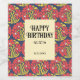Ce étiquette de vin d'anniversaire super rétro présente une fleur de marguerite abstraite dans un style trippy super, motif sans couture sur un arrière - plan de marine.