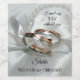 Un étiquette romantique à vin avec des anneaux de mariage d'argent et d'or rose sur un arrière - plan avec perles. Beau comme une faveur de mariage ou de demander à vos amies si elles seront vos servantes d'honneur.