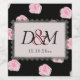 De grands roses de chou rose sont répartis sur un arrière - plan noir dans ce design romantique et moderne. L'entrée centrale est entourée de dentelle en forme de coeur noir. Tout le texte est facilement customisé.