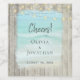 Le complément parfait à votre toast mariage, ce étiquette de vin de plage rustique simple et élégant personnalise votre vin mousseux dans le style. La scène bleu marine avec des rouleaux est encadrée de bois patiné rustique, et décorée au sommet avec des lampes à cordes.