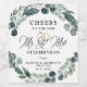 CHEERS AU NOUVEAU M. ET MME étiquettes de vin personnalisés pour une fête de mariage ou de mariage. Le design est composé d'aquarelle vert sauge et bleu poussiéreux vert eucalyptus, anneaux mariages, une police de script élégante de style calligraphie et personnalisée avec les noms des jeunes mariés et la date mariage. Contactez le concepteur via Zazzle Conversation ou makeitaboutyoustore@gmail.com si vous souhaitez modifier ce design, sur un autre produit ou pour coordonner des éléments.