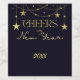 Portez un toast à l'avenir avec "Cheers to the New Year" écrit dans un texte doré éclatant, accentué par des étoiles chatoyantes sur un arrière - plan bleu profond. Personnalisez-le avec une date personnalisée pour rendre votre célébration unique mémorable et élégant.