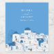 Une belle marque de vin avec illustration rustique de Santorin, églises à coupole bleue, Bougainvilliers, plantes en terre cuite avec fond de mur blanc de l'île grecque. Destination élégante Santorin, design de mariage grec parfait pour Santorin et les mariages de style méditerranéen de l'île grecque. Des invitations de mariage et d'autres articles de papeterie sont également disponibles.