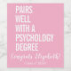 À votre santé, jeune diplômé en psychologie ! Nous célébrons votre réussite incroyable avec une bouteille spéciale de vin portant une étiquette personnalisée et humoristique. Le design présente un fond rose poudré avec un texte blanc gras qui dit : "Se marie bien avec un diplôme en psychologie". En dessous, "Félicitations, [Nom] !" est écrit de manière élégante en calligraphie, et "Promotion 2024" est affiché en lettres blanches et épurées en bas. Cette étiquette personnalisable vous permet d'adapter le design pour qu'il convienne parfaitement à l'occasion. Célébrez leur succès impressionnant avec cette étiquette de vin unique et mémorable !