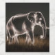 Silhouette d'éléphant lumineux, photo d'une silhouette d'éléphant lumineux. Le corps de l'éléphant est illuminé, avec la lumière qui souligne la hauteur majestueuse de son tronc et l'arc de son dos. L'éléphant se tient dans un champ de hautes herbes, qui sont également éclairées. L'arrière - plan est un noir solide. L'éclairage crée un sentiment de grandeur.
