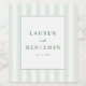 This elegant wedding wine label features a minimalist design with a central white square framed by thin green lines, set against vertical light green stripes. The color palette includes muted greens and whites, creating a fresh and calming aesthetic perfect for celebrating special moments. The typography is clean and sophisticated, with customizable names and dates, allowing you to personalize the labels effortlessly. Ideal for weddings or anniversaries, this design exudes tranquility and modern elegance, making it a stylish addition to any celebration.