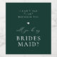 Moderne minimaliste, Bridesmaid proposition bouteille étiquette. Design de typographie élégant en blanc avec accent du coeur et calligraphie graphique sur arrière - plan vert émeraude.
