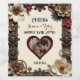 Santé! Joli mariage étiquettes de champagne avec photo de mariée et de marié dans un coeur. Paisley Bourgogne et arrière - plan papier patiné vintage avec roses bordeaux, or et cuivre métal engrenages thème steampunk. Citation : "Heureusement pour toujours après."