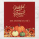 Un arrière - plan couleur terre cuite. Fleurs de automne orange et jaune et citrouilles orange, blanc et vert. Personnalisez et ajoutez votre nom de famille. Texte : Grateful and Blessed