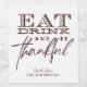Merci pour Thanksgiving avec ces étiquettes qui ont une conception typographique moderne. Ce étiquette de vin est personnalisable en bas avec un nom et la phrase Eat Drink et être heureux dans la conception de typographie amusante.