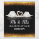 Thème noir et or avec décor de table Mariage de cygnes illustré. Classique et unique