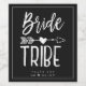 Un article-cadeau spécial pour votre tribu de mariée de confiance. Il présente un look classique à thème noir et blanc avec les mots tribu de la mariée écrits dans une police de style manuscrit. Entre les deux mots se trouve une flèche tribale perçant un cœur.