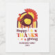 Un étiquette de vin coloré avec un texte "Bon thanksgiving" de typographie élégante, et une jolie dinde avec un arc-en-ciel coloré et quelques feuilles d'automne. Le étiquette comprend un nom de script et une année qui peut être personnalisée.