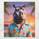 Funny Hippopotamus portant une chemise hawaïenne sur une belle plage.