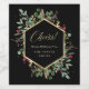 Ces magnifiques étiquettes de vin de fêtes présentent un cadre géométrique doré avec des feuilles dorées assorties, de la verdure de Noël et des baies de houx rouges sur fond noir. Le mot « Santé ! » apparaît dans une calligraphie dorée moderne. Parfait pour votre mariage d'hiver élégant ou votre fête.