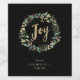 Ces magnifiques étiquettes de vin de vacances disposent d'une couronne d'aquarelle festive de feuilles d'or, de verdure de Noël et de baies rouges saintes sur un arrière - plan noir moderne. Le mot "joie" est présenté dans la calligraphie élégante, fausse or.
