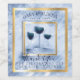 Étiquettes de vin amusantes pour vos vins de faveur de mariage, avec un trio de verres à vin et un fond marbré en bleu populaire, avec une garniture en faux or, personnalisé avec les noms des mariés et le texte de votre choix.