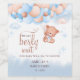 A charming baby shower wine label featuring an adorable teddy bear holding soft blue and blush balloons with dreamy cloud and star accents. The playful “We Can Berly Wait” phrase gives this watercolor design a sweet and stylish look, perfect for dressing up wine bottles for a baby shower celebration. A lovely choice for baby shower bar decor, hostess gifts, drink station styling, or coordinated teddy bear party details.