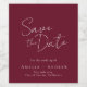 This modern, minimalistic wedding Save the date features an elegant script front. It plays with the simplicity of a burgundy and white typography design. It's the perfect choice for couples who appreciate clean and modern elegance. For any special design needs, feel free to get in touch with the designer directly by emailing choosehappystudio@yahoo.com