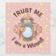 Vieux sorcier avec cape rose regardant la boule de cristal magique.