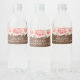 Texte personnalisé baby shower bouteille d'eau étiquette avec un motif en bois marron rustique et fleurs vintages d'aquarelle rose clair.