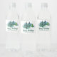 This beautiful custom business holiday party water bottle label features gorgeous green Christmas trees in a winter landscape above your customized company name and Happy Holidays. Personalized holiday decor for a corporation or family.