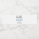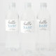 Étiquettes de bouteille d'eau de baby shower simple et moderne sur mesure, en bleu et blanc avec les mots "bonjour bébé".