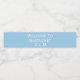 Étiquette de bouteille bleu clair et blanc parfaitement chic et simple pour accueillir vos invités à votre mariage nautique
