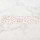 Les confettis roses et or accueillent les étiquettes des bouteilles d'eau.
