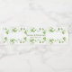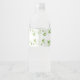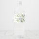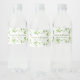 Étiquette de bouteille d'eau bordée de feuilles de trèfle verdâtres et de volutes dans le style aquarelle.