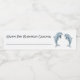 Étiquettes de bouteille d'eau personnalisées pour l'anniversaire d'un enfant avec des dauphins. Personnalisez avec le texte de votre choix, tel que « Joyeux 8e anniversaire [nom] » avec une ligne pour écrire le nom de l'invité. Deux dauphins à gros nez se tiennent debout sur leur queue dans ce design, parfait pour une réunion ou une fête d'été avec un thème sous la mer. Le texte est dans une police manuscrite en noir.