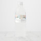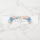 Étiquettes de bouteilles d'eau avec un design romantique bleu poussiéreux et rose floral.