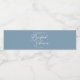 Une bouteille d'eau de douche nuptiale bleu et poussiéreuse étiquette pour un événement côtier d'été au bord de la mer. Personnalisez ces étiquettes bleu gris clair avec une élégante typographie minimaliste pour correspondre à votre jeu de couleurs nuptiales tranquilles.