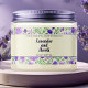 Étiquette étanche pour cosmétiques et/ou produits de savon avec arrière - plan bronzé et fleurs violettes et feuilles verts. Customisez-le avec vos informations commerciales et produit.