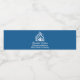 Ces étiquettes de bouteille d'eau de courtier professionnel sont personnalisées avec le nom de votre société immobilière sous le script cursif blanc moderne pour une journée portes ouvertes. Cette étiquette promotionnelle chic personnalisée bleue pour entreprise de courtage immobilier présente une image de logo de maison pour le marketing d'une entreprise de constructeur de maisons ou d'agent immobilier.