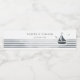 Faites la fête de votre mariage avec ces étiquettes de bouteilles d'eau personnalisées, avec le nom et la date de la mariée et du mariée, ainsi qu'un charmant voilier sur des rayures nautiques dans des teintes bleu-gris apaisantes. Parfait pour ajouter une touche de style côtier de la Nouvelle-Angleterre à votre journée spéciale.