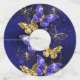 Composition des luxueux papillons saphir et bijoux en or sur arrière - plan bleu texturé.
