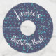 La modèle en verre de vin est agrémentée d'un amusant arrière - plan bleu pois. Ajoutez simplement le nom de la personne et le nom du parti et vous êtes tous prêts !