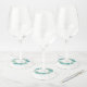 Tags turquoise et or tropical feuille mariage Round Wine Glass. Un joli design mettant en vedette les feuilles de Split Leaf Philodendron (Monstera deliciosa) ou Plante de fromage suisse et feuilles de palme en bleu turquoise avec contour d'or. Votre texte est dans un cadre blanc avec contour doré. Choisissez-le pour votre plage tropicale côtière ou mariage de destination. L'arrière comprend un motif à pois dorés bleu.