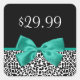 Des autocollants empreintes de léopard en noir et blanc à la mode avec un ruban vert émeraude attaché dans un joli arc. Personnalisez ce design chic et chic de motif animal en ajoutant le nom d'esthéticienne. Image imprimée plate, pas l'arc réel.