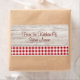 Ce Étiquette de produits de table de pays avec bois patiné et en vichy rouge et blanc est parfait pour les pots de canne ou les articles de boulangerie.