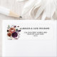 Conçu pour coordonner avec notre collection de mariage Prune Rustique, cette étiquette présente un spray de roses violettes et de plumes à l'aquarelle