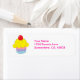 Étiquettes de adresse Rainbow Cupcake. Les étiquettes personnalisables ont un joli cupcake jaune coloré avec des arroses et une cerise rouge sur le dessus.